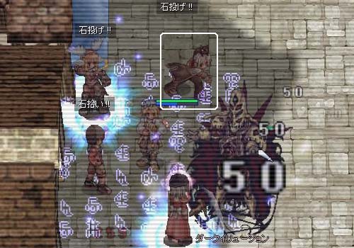 どうせだから全員石投げで倒すことを試みた。けどHP高くて想像以上に時間がかかりました。